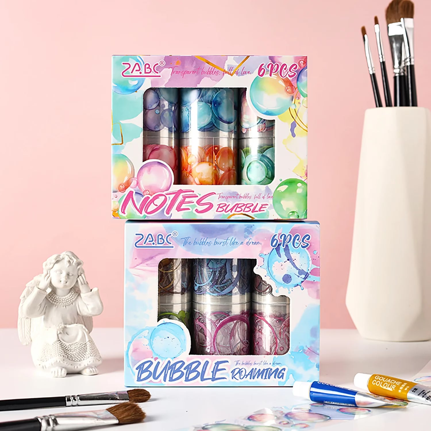 Elevate your stationery collection with the Bubble Burst Sticker Roll Set—a vibrant assortment of six coordinated rolls designed for creative expression and personalization. Each roll features playful, eye-catching bubble-themed designs perfect for decorating journals, planners, laptops, and gift wrapping. Ideal for collectors, crafters, and stationery enthusiasts, this set combines quality adhesive backing with kawaii-inspired aesthetics. Mix and match patterns to customize your projects with ease. A giftable essential for anyone who loves adding personality to their everyday items.