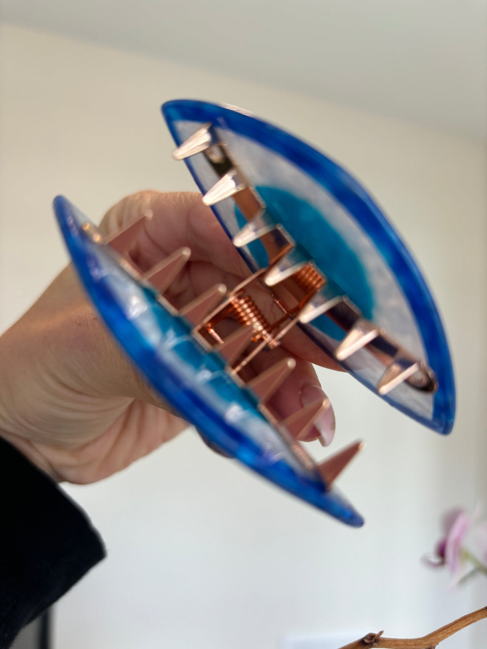 The Evil Eye Claw Clip expertly combines style and protection in one accessory. Designed with an intricate evil eye motif, it not only secures hair firmly but also symbolizes warding off negative energy. Crafted for durability and comfort, this claw clip is an ideal choice for keeping hair neatly styled throughout the day while adding a subtle yet meaningful detail to your look. Perfect for professional or casual wear, it enhances your hairstyle with a touch of cultural significance.